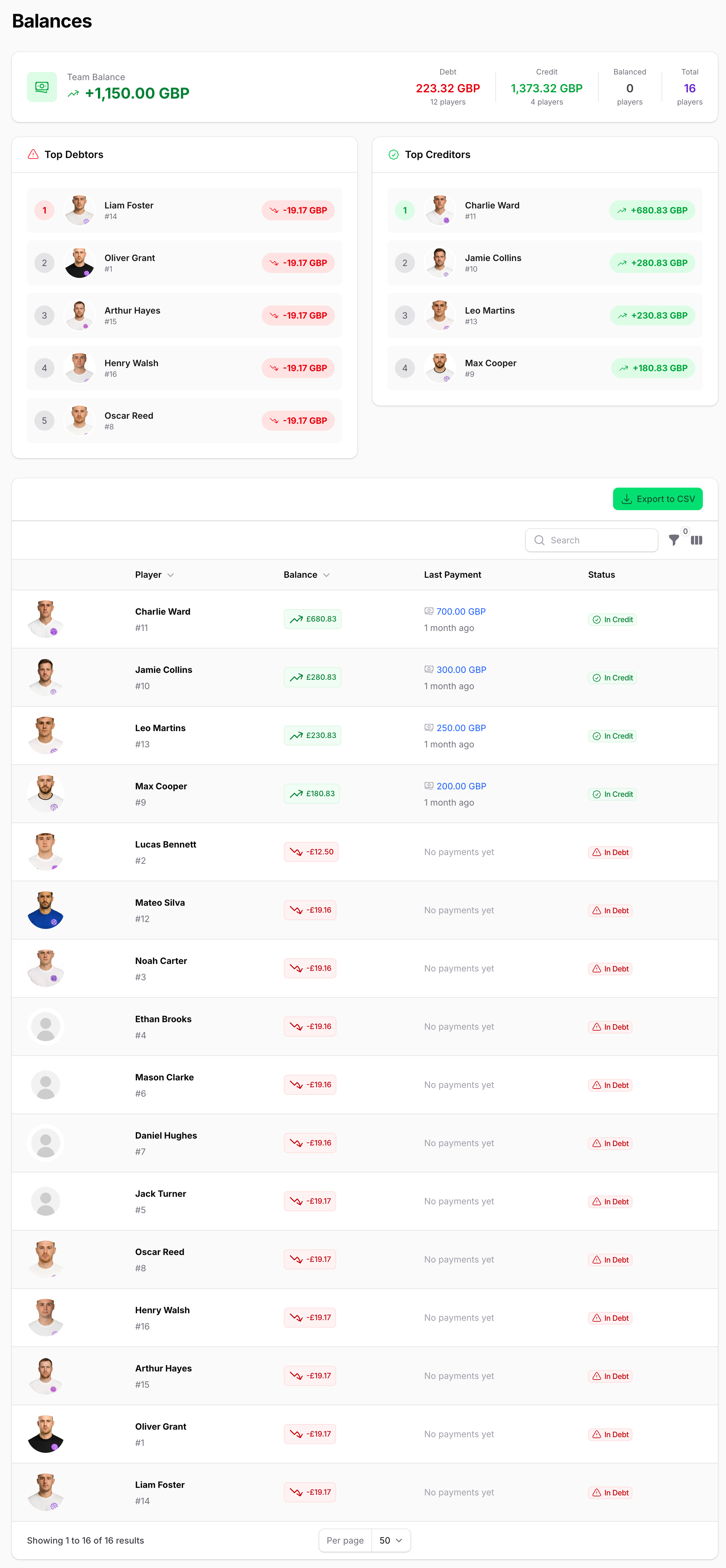 Running a First Team, U-18, Women's Squad, and Reserve Team? KickPilot Premium lets you manage them all in one place – each with its own roster, schedule, and finances.