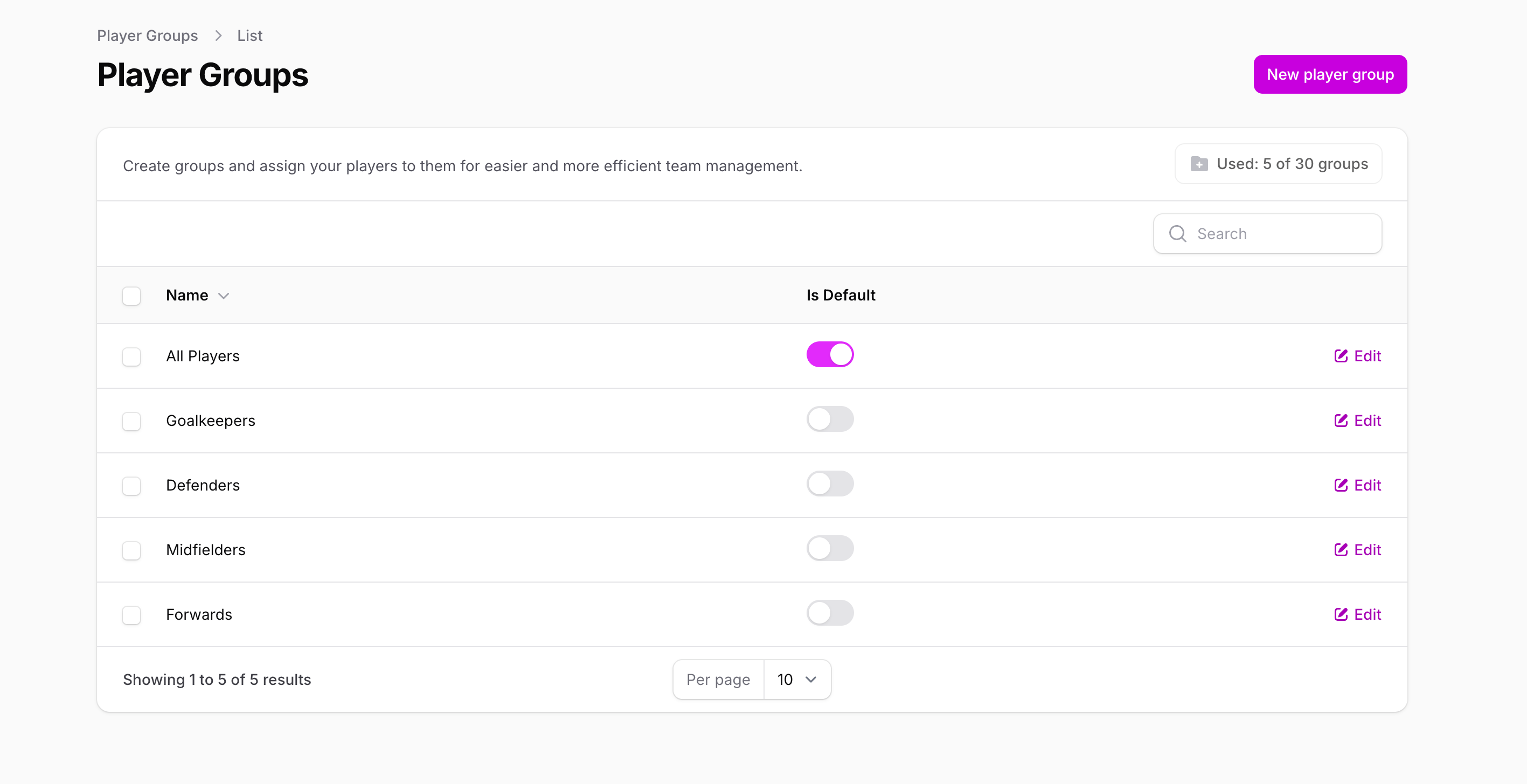 Each player can have one "primary team" (marked with a star) which appears prominently in their profile. You can easily see and manage all team assignments from the player's profile.