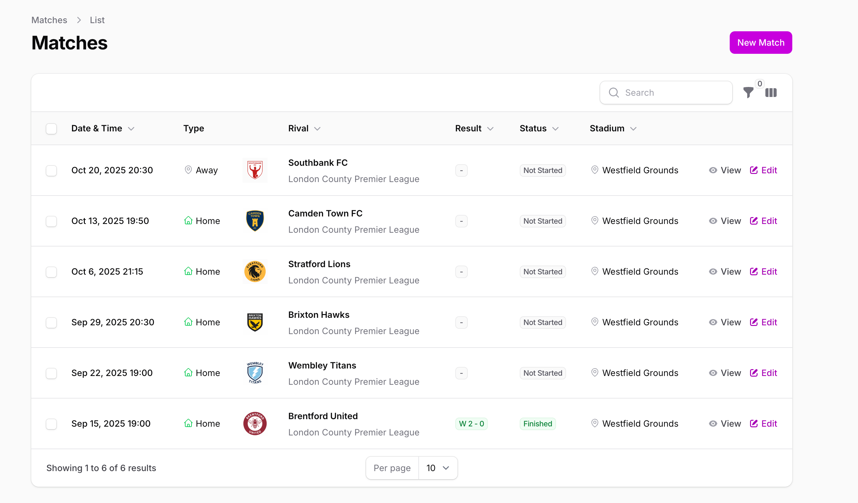 When you select a team, all data automatically filters to show only that team's players, matches, trainings, finances, and tasks. Switch back to "All Teams" anytime to see everything across your entire club.