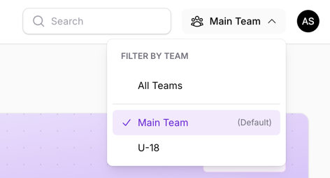 👉 The team selector appears in your dashboard navigation. Click it to switch between your teams or view all teams at once.
